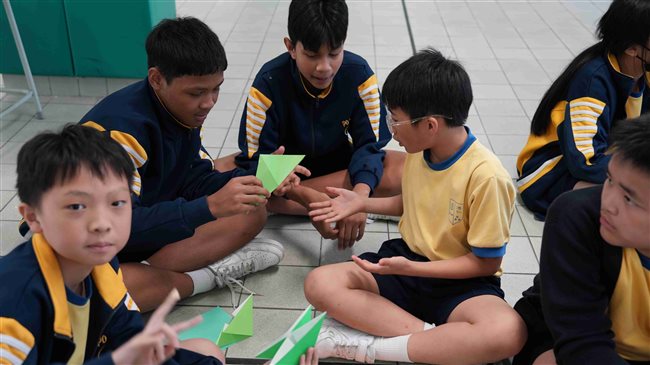 2.通過手摺玫瑰花學生一同拼出玫瑰唸珠,再認識唸珠上的象徵意義。