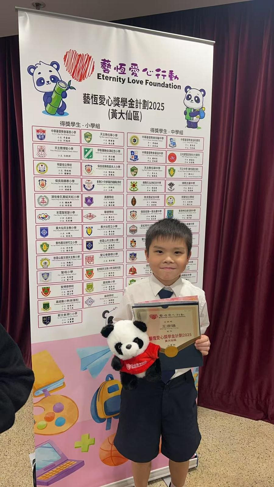 5A 李爾謙同學 榮獲 「藝恆愛心獎學金計劃2025 -黃大仙」